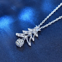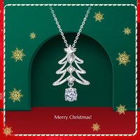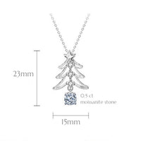 This Necklace features a beautiful Christmas tree design crafted in bright 925 silver. The tree shape is formed with smooth curved lines and small sparkling accents, giving it a soft and magical glow. At the bottom hangs a 0.5 ct D-color VVS moissanite drop stone that shines with striking brilliance. The look is festive, elegant, and full of charm, making it a lovely accessory for the holiday season.